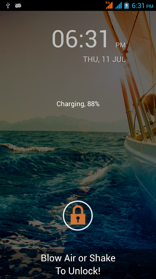 Blow to Unlock , Lock screen app allows you to unlock your screen by blowing to the Mic or Shaking the phone.